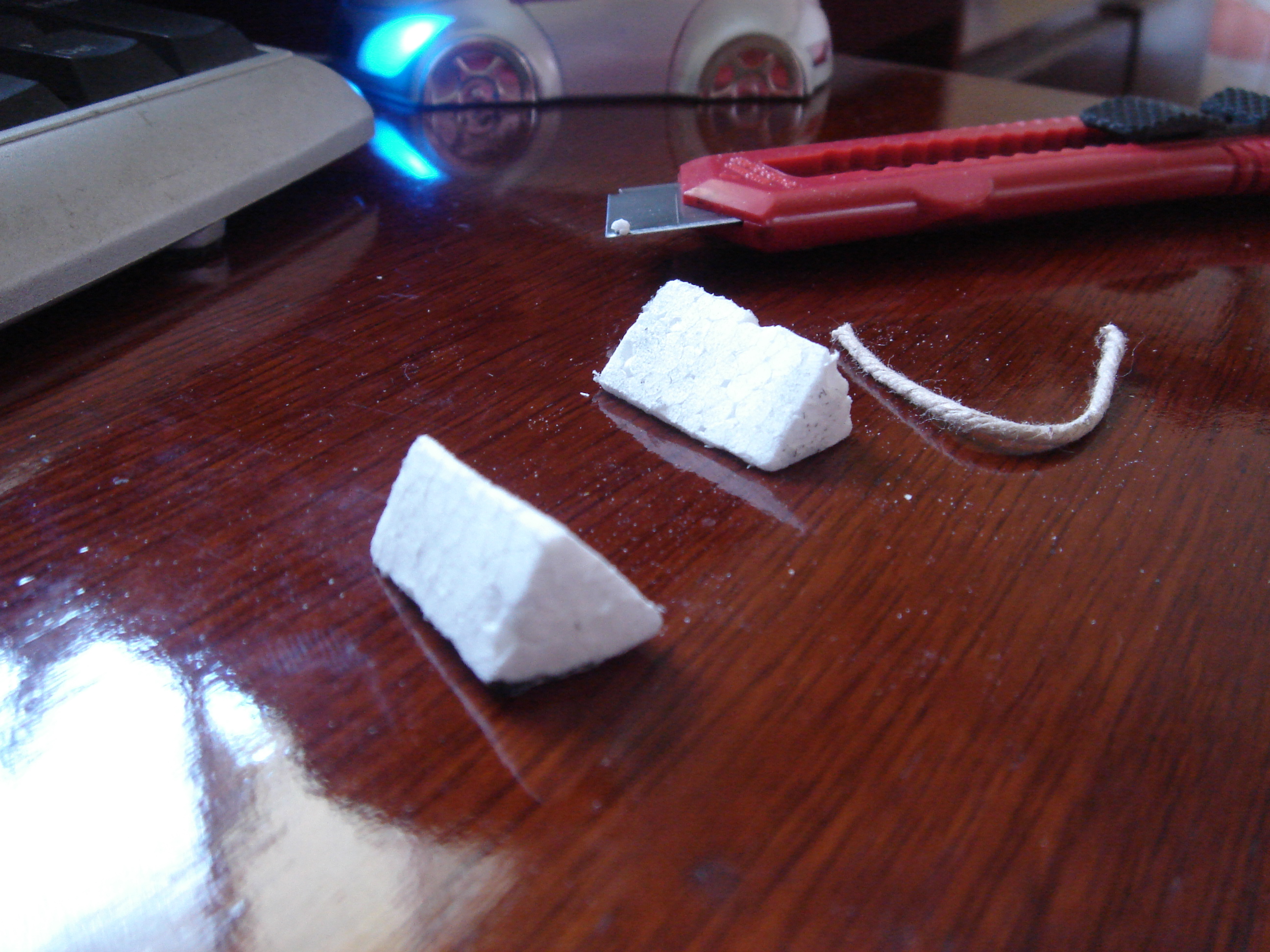 Utilizei apenas um pedaço muito pequeno de isopor P3 que havia guardado.